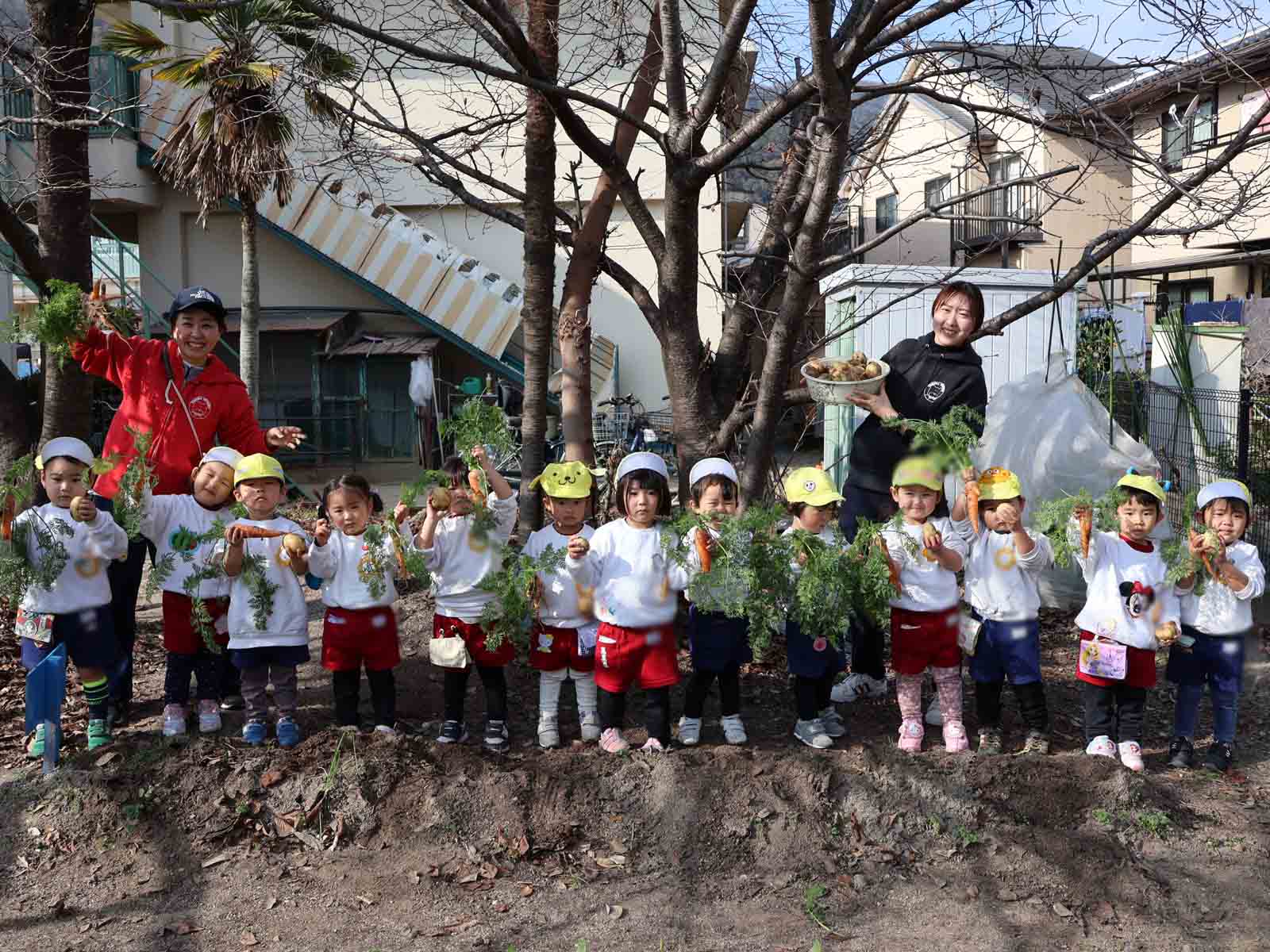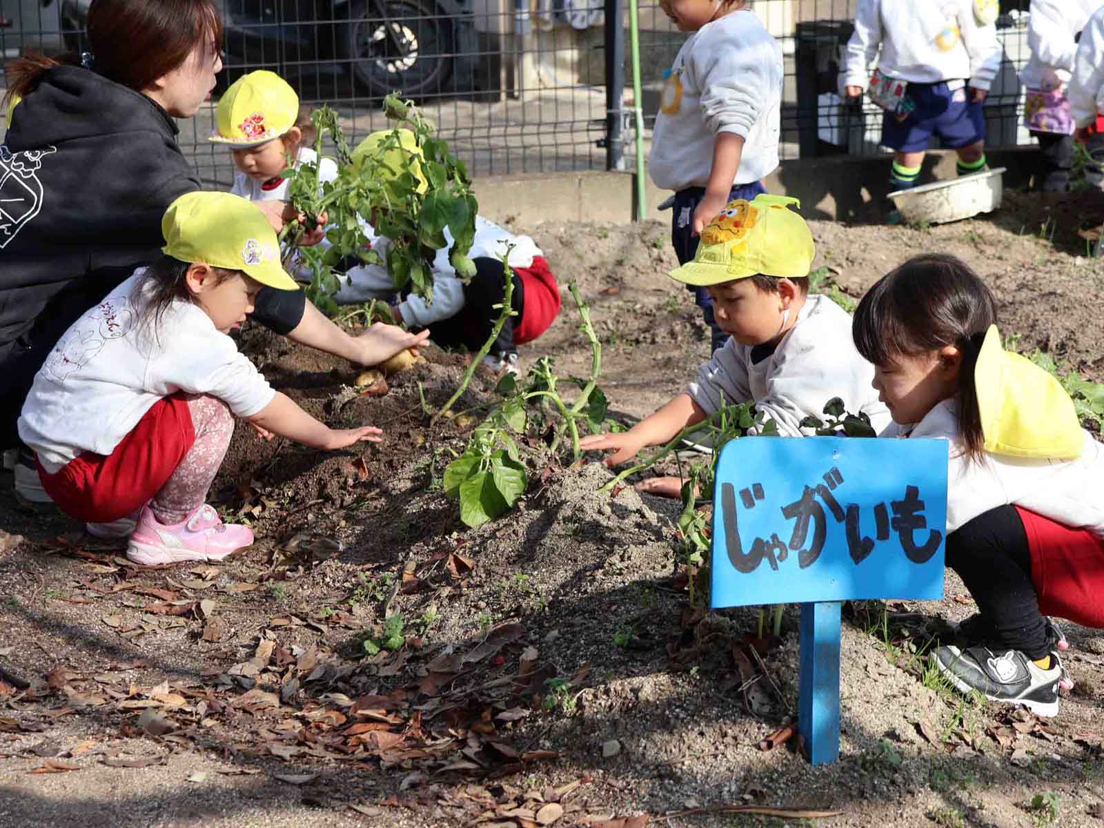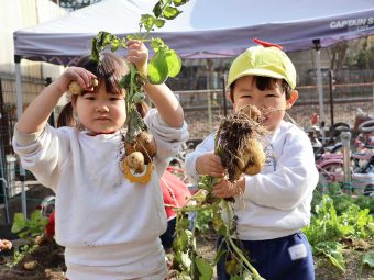 たんぽぽ組さんがよいしょっよいしょっと、一生懸命掘ってくれました。今年も美味しいカレーが作れそうです♪