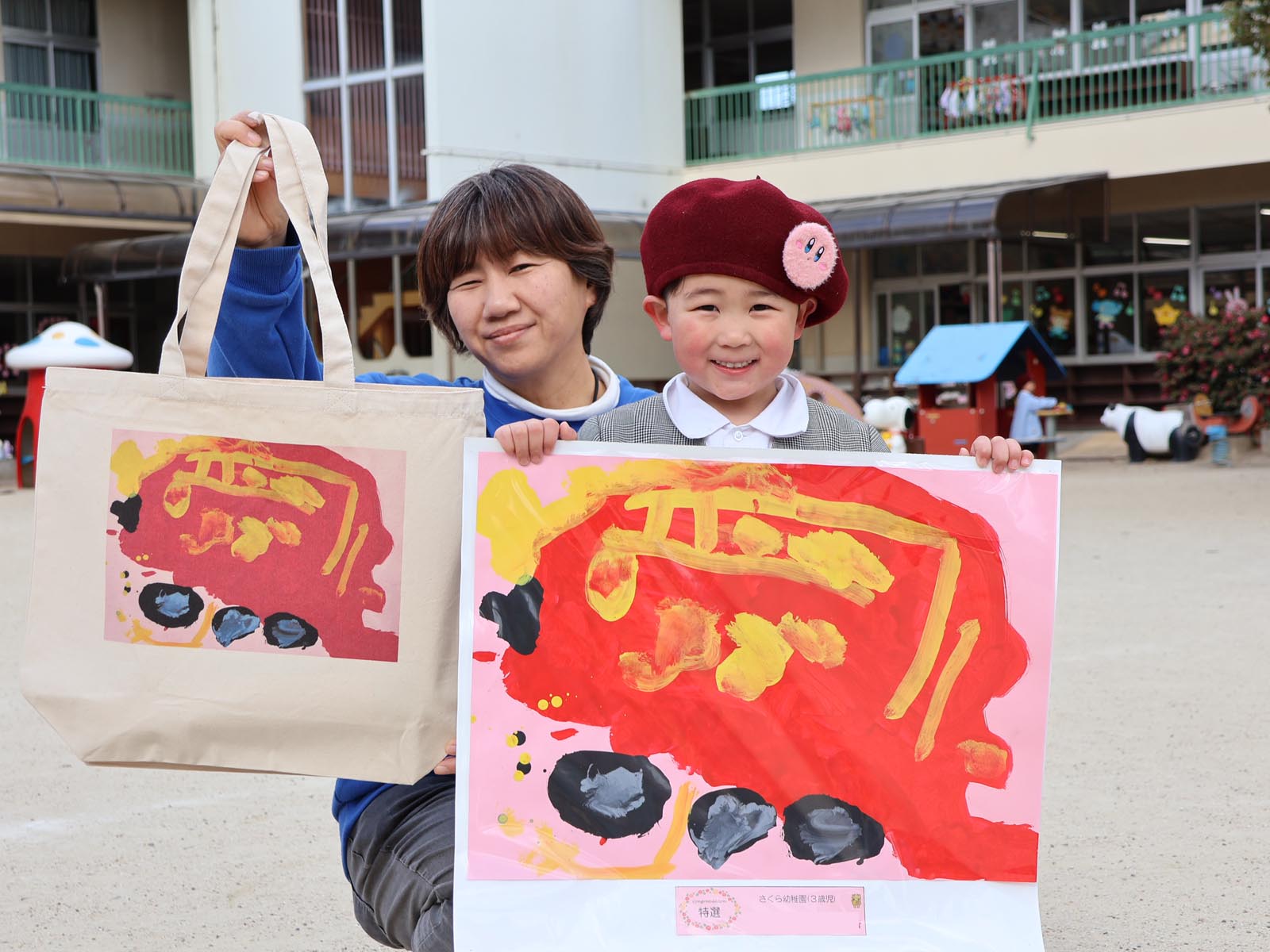 で、見事『特選』入賞されたおともだちの絵が、素敵なプレゼント付きで返ってきました!