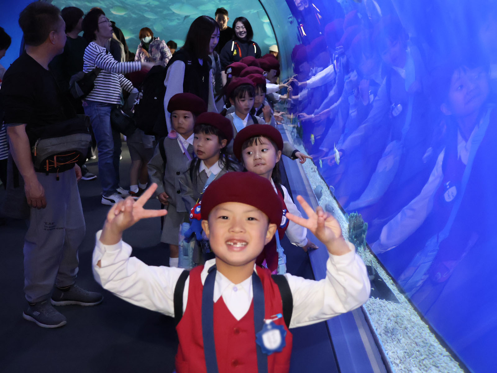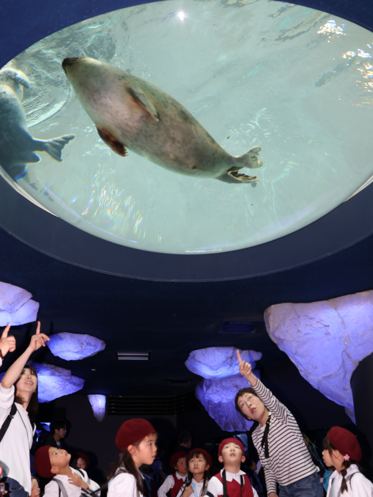 下の方の魚を見ようと床に伏せてみたり、大きな魚が近づくと大喜びしたりとずっと大興奮でした!
